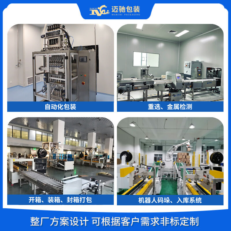 迈驰是一家专业生产全自动多列液体包装机整线厂家,可根据客户不同物料特性定制一对一方案,按您的产量定制列数-有序理料装盒-自动装箱-机器人码垛。26年包装行业经验,助力生产企业稳定生产,提高产能。