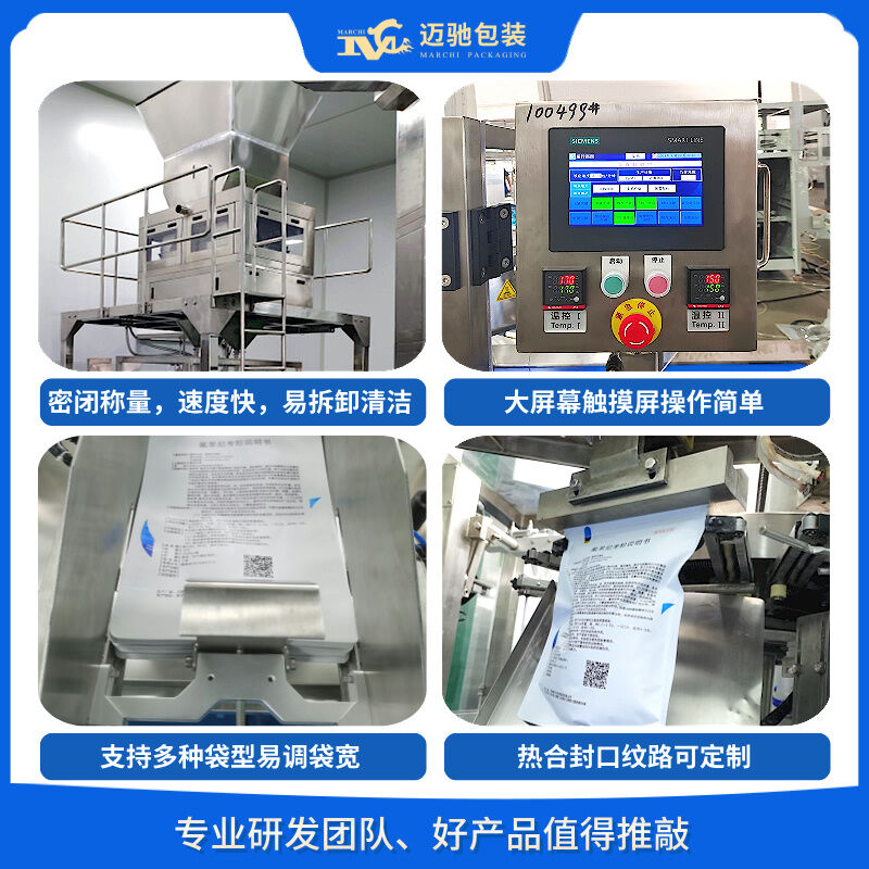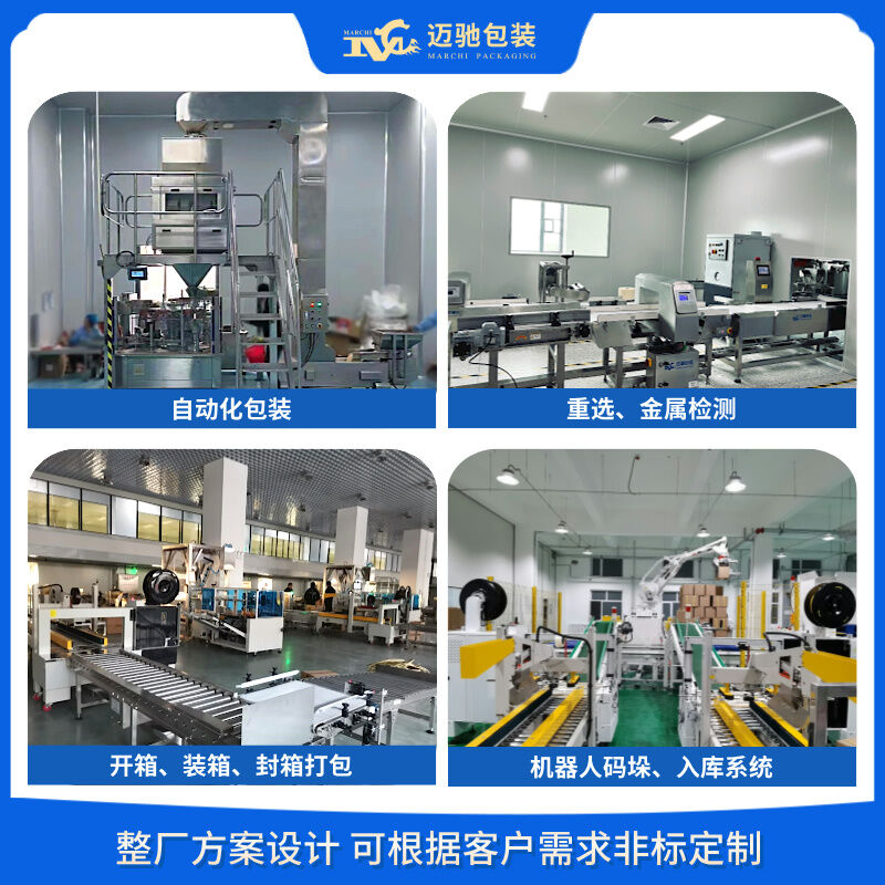 迈驰是一家专业生产全自动给袋式包装机、灌装机厂家,可根据客户不同物料特性定制一对一方案,为您解决包装精度的问题。一键调节袋宽,换产更方便。整厂方案设计,支持非标定制。26年包装行业经验,助力生产企业稳定生产,提高产能。
