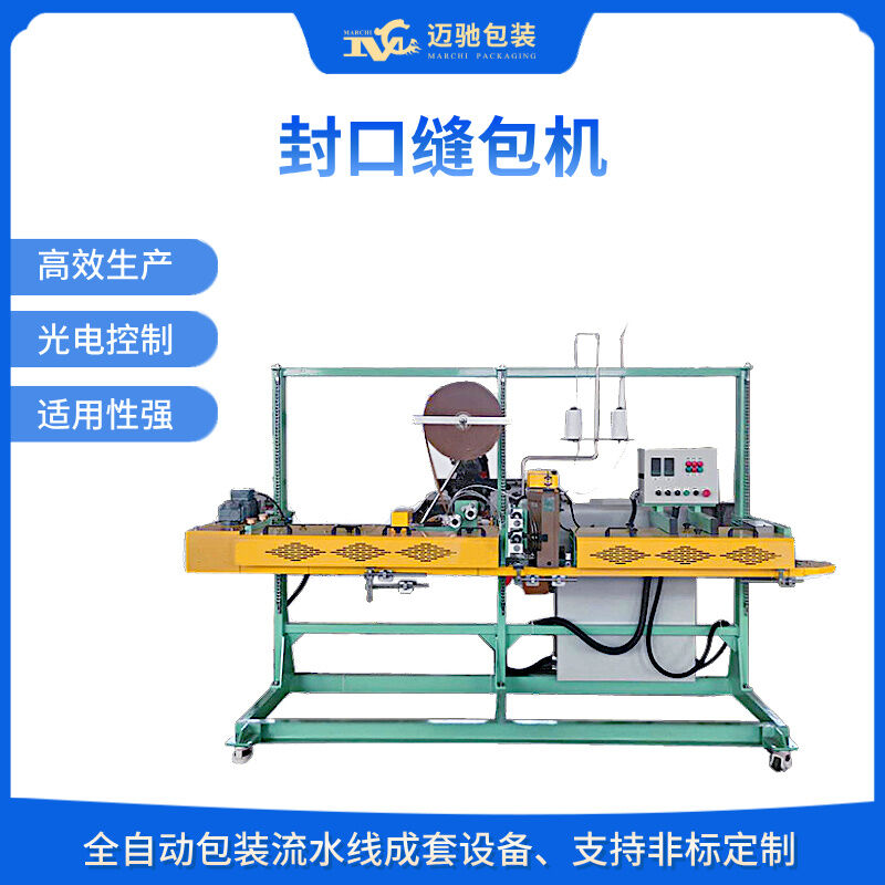 该设备适用于包装重量5-50kg的重型大袋的自动封口缝包,适用于单层或多层牛皮纸袋,纸塑(PE)复合袋,纸塑编织复合袋、彩膜复合袋。工作流程:该机型可按程序自动完成包装袋口的内袋热合,缝合,剪线辫,袋口修剪,包纸带、剪纸袋、热封、压合工序。